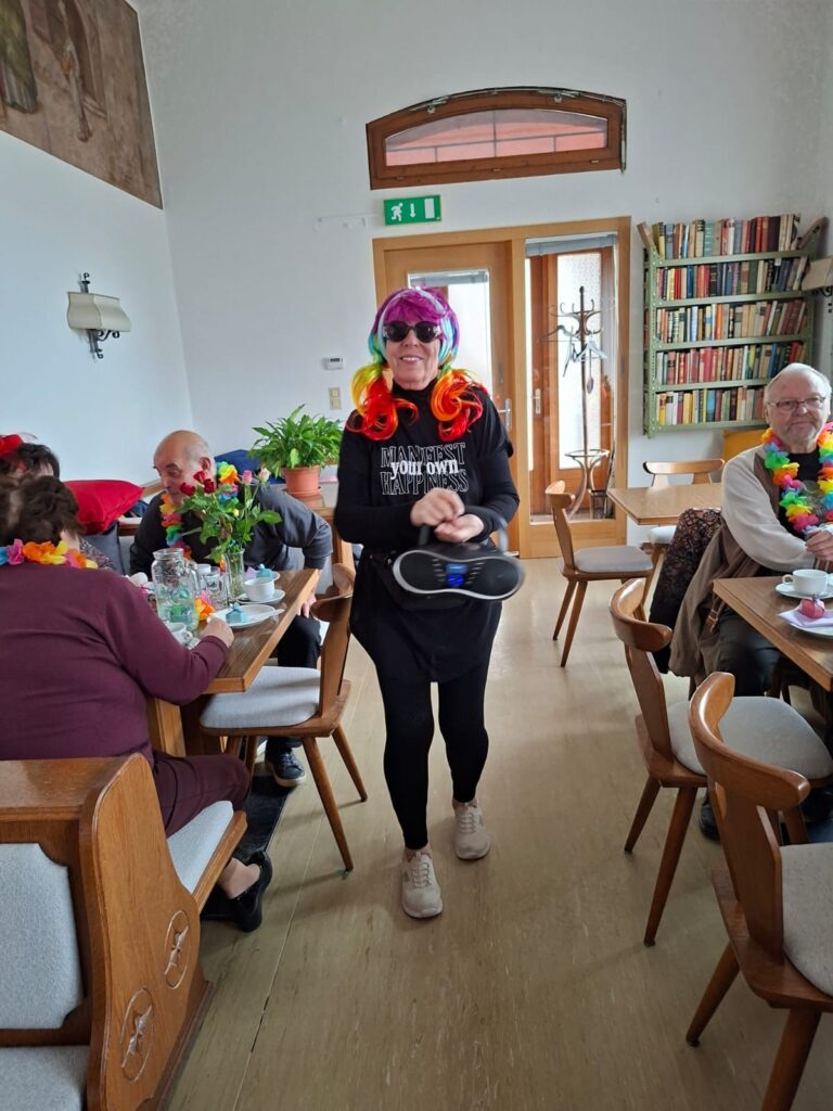 Dazwischen jeden Montag um 14 Uhr gute Unterhaltung bei Kaffee und Kuchen und mit Erzählungen von Frau Zimmermann (Ausnahme Feiertage)